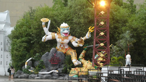 Several entertainment spots featuring Thai culture, such as boxing, fruit carving, and the obligatory elephant.