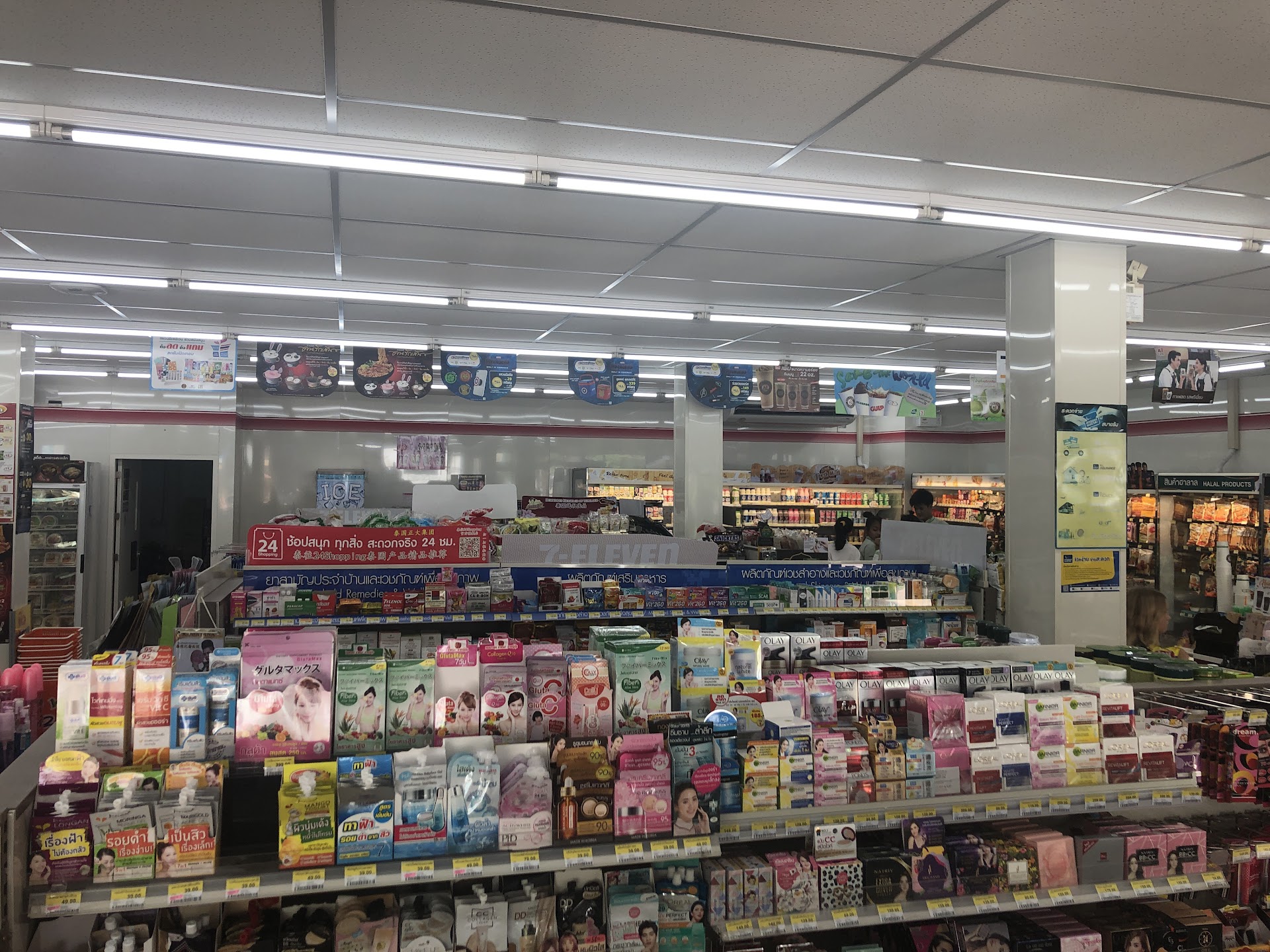 Une chaine de magasins en Thaïlande ouverte 24 h sur 24 quand même , on y trouve tout à part effectivement des fruits ou légumes frais , mais toutes les boissons possible à disposition , produits d'hygiène et de nettoyage , possibilité d'acheter de la nourriture sous blister et de la faire réchauffer sur place , possible de faire un petit déjeuner dans certains magasins qui possède un coin snack et tout cela à des prix raisonnables . Vous trouverez aussi du produit anti moustique très efficace . Avec le Seven Eleven pas besoin de débarquer en Thaïlande avec une armada de produits , vous trouverez tout sur place.