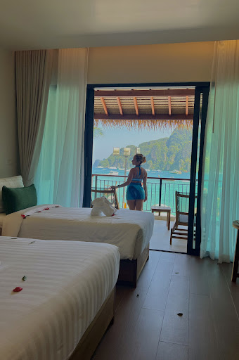 I love this hotel. It’s quiet, but close enough to all the fun & shopping. One minute walk from Tonsai Pier. The room is impressively clean and gorgeous. The air conditioning works great. Just give it ten minutes after you come in from the heat to really kick in. The bed is so comfortable & they have the perfect pillows. I might see if I can buy one when I check out. The tv is gigantic & you can log into your Disney, Amazon, HBO Max, etc. accounts, the shower has two heads, the toilet is in a separate space, and the bidet nozzle is different. It’s kind of fancy. The view from the balcony is breathtaking. The couch and love seat are really nice when you want to look outside but stay in the air conditioning (or to read or whatever). There are PLENTY of light switches, which is really nice. The whole staff is very friendly and accommodating. If you need help with your bags going upstairs, there is a call button & they’ll run down and help you. So, yes, there are stairs. That means no wheelchair, walker, etc. accessibility. Unfortunate, but it kind of looks like they may be putting in an elevator. We’ll see. That would be nice. Overall, yes, I love this place so much. The only thing, besides handicapable accessibility, would be a larger fridge. I got a bunch of drinks and chocolates from 711 & there’s not much room to put everything because the mini fridge is already stocked with drinks you...