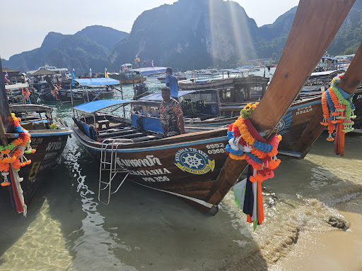 Read moreThe pier was as expected for this location, extremely crowded. We took a longboat to Bamboo Island, but the experience was awful. As soon as we stepped off the speedboat from Phuket to Phi Phi, we were charged 80 Baht (20 per person) for some sort of tax. Then, locals aggressively pressured us to take a longboat. We agreed and decided to head to Bamboo Island. The driver, let's call him "Natasha," initially quoted us 4,000 Baht, but we negotiated it down to 3,200. He told us the trip would take 1.5 hours each way and that he’d pick us up at 2 PM to ensure we’d make it back in time to catch the speedboat to Phuket at 5 PM (4:30 PM for check-in).