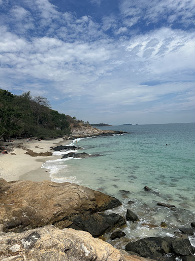 Secluded.. not very easy to get to.. a bit of a hike from either direction.. forest trail or boulder hike.. choose your hard... but crystal clear water... waves and birds .. boulders.. peace and quiet.. A vegan/vegetarian restaurant uphill overlooking Ao Nuan... Wear good shoes if you want to get here.. lack of facilities makes it less suitable for a day ..unless you are a hotel guest located...