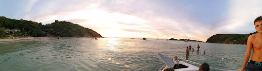 The atmosphere at Ao Phrao was peaceful and serene. The sea water was clear, allowing us to see the sandy bottom. The blue of the ocean contrasted beautifully with the green of the surrounding trees. We took a stroll along the beach for a while. This bay is perfect for relaxing or swimming in the sea. We also had time to capture some lovely shots of the sea and sky, which looked bright and vivid at that time of day.
