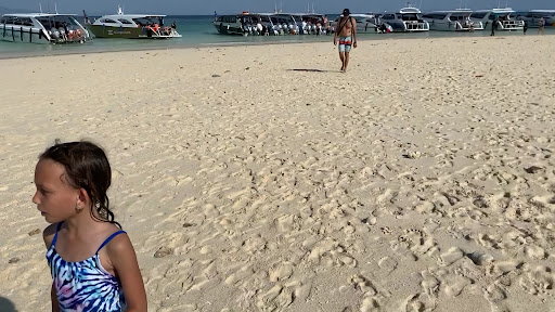 Aside from Koh Hong, this island has the most enjoyable swimming with fish and shallow water snorkeling. Your kids will enjoy this. The north of the island, close to where boats are docking to the west(right), offers a beautiful beach and shallow water full of mostly sergeant major fishes that you can snorkel or swim with. Further down is the bank of corals that are easy to swim over and watch the sea life underneath, be careful of the sharp corals. If you go further with your kids, I suggest that your kids use a floating or life jacket so your kids can float over the coral bank, depending on the tide. I recommend visiting this beach for a day trip. Your kids...