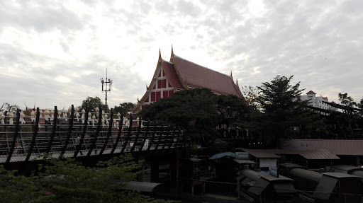 Right by the canal or khlong. This is the sister temple to Wat Bumpengnua. The monks showcase how locals would practice binthabhat (alms offerings) back in the days before roads were built. Back then the monks would usually visit the people using little boats. Come before 8:00am to see this.