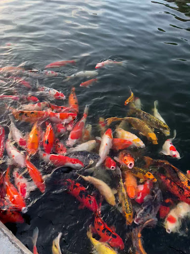 💡 ไฮไลท์ที่พลาดไม่ได้ • พระอาทิตย์อัสดง : ช่วงที่ท้องฟ้าเปลี่ยนสีจากฟ้าใสเป็นส้มอมชมพู แสงสะท้อนกับผิวน้ำและฝูงปลาคาร์ฟ มันคือโมเมนต์ที่หัวใจเหมือนถูกสะกดให้นิ่ง…แล้วคุณจะรู้สึกว่า “ที่นี่ใช่แล้ว” • กิจกรรมเพลิน ๆ : ซื้ออาหารปลาถุงละ 10 บาท โยนลงไปแล้วมองฝูงปลาคาร์ฟแย่งกันว่ายขึ้นมา เป็นความสุขเล็ก ๆ ที่ทำให้ยิ้มได้โดยไม่รู้ตัว • ถ่ายรูปสวยทุกมุม : ไม่ว่าจะเป็นกำแพงเพนท์สีสันสดใส สะพานเล็ก ๆ หรือน้ำตกที่จัดแต่งไว้ ทุกจุดคือมุมถ่ายรูปที่บอกเลยว่า “โพสต์ปุ๊บ มีคนทักแน่นอน”