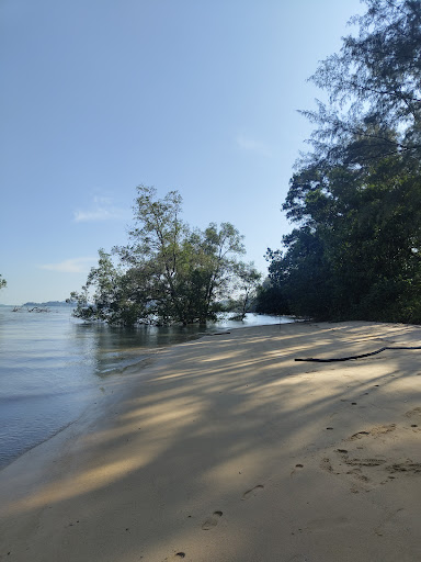 wonderful authentic beach. three fishermen's houses and nothing else. this place is great for walks in silence, peace and away from people. trees grow in the water, it's stunningly beautiful. there is a small pier and two stairs into the sea. the embankment itself is not big, 15 minutes in both directions and with jungle on the other side. this is not a tourist place at all, but a place for fishing, peace and privacy with a view of the islands and mangrove trees...