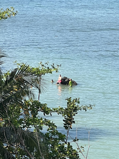Despite the language barrier, however, the elephants were an absolute joy to be around. We had a blast splashing around in the water with them and taking in their playful antics. But let me tell you, getting down to the beach was no small feat - the steep staircase leading down from the main road was a real workout, and we were all huffing and puffing by the time we reached the bottom.