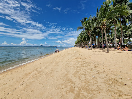 Read moreVery nice stretch of beach, sea is much cleaner here than Pattaya and easily reachable by Songthaew for just 20 Baht from Pattaya. At the south end you have a car park and the north end beach volley ball areas. Along the length of the beach you have three zones, the open beach itself, then the strip of sun loungers with parasols, then a nice shaded tree lined area where many vendors setup to serve people using the beach. Behind the tree lined area at the back you have a paved promenade. There is a huge boomed protected swimming area and outside of this several watersports. You can hire windsurfing boards and there are quite a few ladies offering beach massages on large mats covering the sand. There are a couple of toilet blocks along the beach with 5 Baht usage fee and several restaurants the other side of road running...