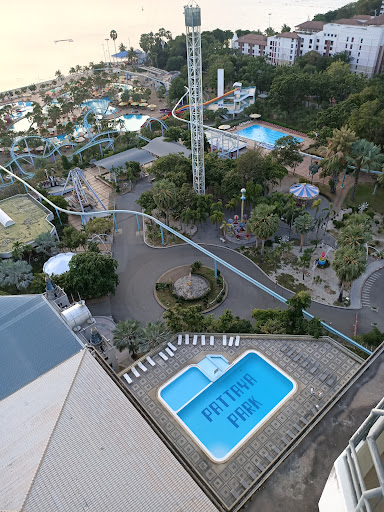 Read moreThis is a review of the restaurant at the top of the tower. The actual water park I have never seen open as it may have been low season when I went. The sky lift ride is open every day that goes to the top. You can access it from along the beach side of the park. It's kind of a neat place to walk around and has many interesting things to look at like an old railroad car and some dinosaurs. We went for the all-you-can-eat buffett that opens at 4? It cost 700 Baht but if you have Thai ID, it's 500. Seemed like a decent deal. The view is pretty nice, if you can go on a clear day with no clouds or haze in the sky, otherwise it's not so great. I went 2 times and only got one good sunset. It rotates 360 degrees and it takes about 1 hour for a complete revolution. Plenty of good views of the beach and city. The food was okay, not great, like you might expect from a buffet. You are there for the view, right? They had a wide variety of dishes and also prawns, crab legs and shrimp, as well as salmon. There was a soup bar, plenty of desserts and ice cream, even brewed coffee, a Rarity in Thailand at a restaurant! If you go during the low season, it is quieter and more pleasant. During the high-season (Dec-Mar) around 6, the tour buses full of Chinses show up and it's a zoo and the people eat...