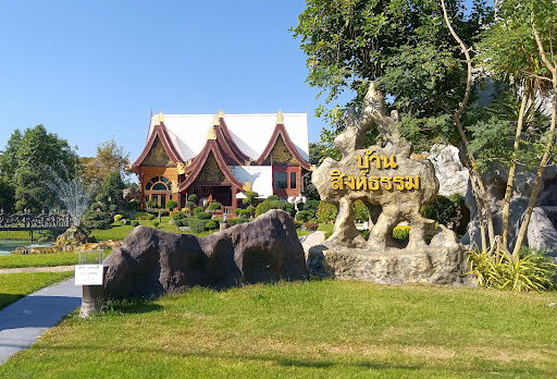 Read moreบ้านสิงห์ธรรม เป็นร้านคาเฟ่และสถานที่แสดงศิลปะ ที่สวยงามมาก มีพื้นที่ถ่ายรูปสวยมาก และยังมีร้านคาเฟ่ ที่ขอแนะนำว่าถ้ามีโอกาสไปต้องรับประทานเค๊กส้ม สุดยอดของความอร่อยจริงๆ บ้านสิงห์ธรรม ตั้งอยู่ที่บ้านผาฮาว ต.ทุ่งผาสุข อ.เชียงคำ จ.พะเยา โดยตัวบ้านเป็นทรงล้านนาประยุกต์ บนเนื้อที่กว่า 10 ไร่ แต่ที่น่าสนใจคือ การสร้างภูเขาจำลอง ถ้ำปูนปั้น มีน้ำตกน้ำพุสร้างความร่มรื่น และด้านในยังมีงานศิลปะหลากหลายสาขา ให้นักท่องเที่ยวเข้าชมได้ฟรี ทั้งงานปั้น งานแกะสลัก งานจิตรกรรม โดยจุดที่นักท่องเที่ยวชอบไปถ่ายรูปเก็บเป็นที่ระลึกก็คือ รูปปั้นคิงคองยักษ์ และรูปปั้นไดโนเสาร์ไทแรนโนซอรัส-เร็กซ์ หรือเจ้า “ที-เร็กซ์” ตัวใหญ่ ที่ใครเห็นเป็นต้องแวะถ่ายภาพ โดยทั้งหมดนี้อยู่ภายในถ้ำที่อยู่ชั้นใต้ถุนบ้าน ส่วนด้านบนบ้านจัดแสดงงานแกะสลักไม้และภาพจิตรกรรม ซึ่งมีวิจิตรงดงามตั้งแต่บันได บานประตู ไปจนถึงด้านในบ้านที่จัดแสดงผลงานศิลปะ บ้านสิงห์ธรรม เริ่มก่อสร้างมาตั้งแต่ปี 2556 ปัจจุบันสร้างมากว่า 9 ปีแล้ว แบ่งเป็น 2 โซน คือที่บริเวณบ้านสิงห์ธรรมก็จะเป็นสถานที่จัดแสดงผลงานศิลปะ มีถ้ำจำลอง น้ำตกจำลอง ให้นักท่องเที่ยวได้แวะถ่ายรูปได้ฟรี ไม่เสียค่าบริการ และอีกโซนก็คือฝั่งตรงข้ามบ้านสิงห์ธรรม สร้างเป็นร้านจำหน่ายอาหาร/กาแฟ มีน้ำตกจำลอง จัดบรรยากาศร่มรื่น...