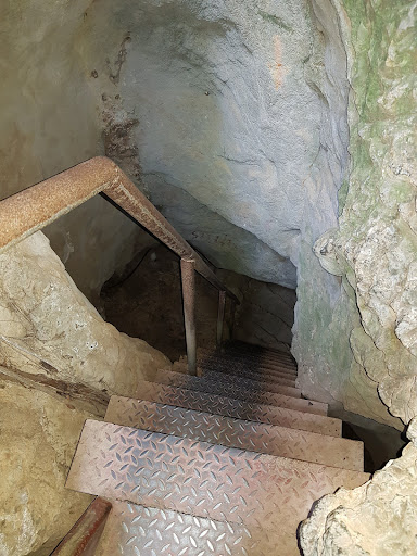 The stairway was in better condition than in some caves I have been. There were lots of openings in the top of the cave, so you did not need a flashlight. Not a lot of stalactites or stalagmites. In the last room there was a set of stair that went steeply to the opening in the top, but we had not brought any water, so we did not go up.