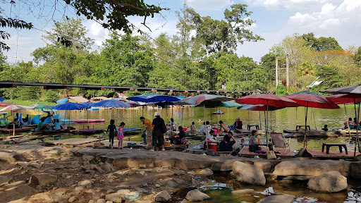 บริเวณที่กว้างๆ ของน้ำตกจะมีเรือให้เช่าพายเล่นด้วยครับ