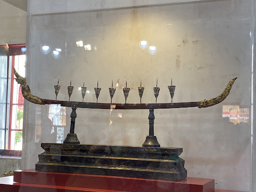 Read moreA katana that forges the nation of Thailand -An antique candle holder which displayed here was actually a sword (katana) once belonged to Maha Sura Singhanat, the viceroy of king Rama I. -The sword and master had fought alongside through many wars and battles during the late Ayutthaya, Thonburi and early Ratanakosin kingdom. -After years of service, Maha Sura Singhanat had refrained from any battle. The master turned it into a candle holder and made offerings to Buddha, willing for the redemption to the lost lives who had been killed by this sword or died during the war under his command. -Nowadays, instead of being praised as a regalia or national treasure. the sword almost forgotten its former glory and legend. humbly taking a long slumber as...