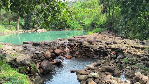 More like pond of a small weir than a water fall. The water is blue and clear until someone kick the mud up. The water is deeper than 2 meters for most of the pond, not suitable for small children. The good thing is that pond is under the shade of trees for the whole day.