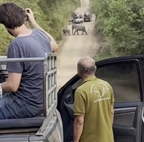 The guides have a radio, so they know where the elephants are at the moment so that all trucks know more or less if an elephant is at the view point. Why they need a radio is strange, because the trucks move like a silly train one after each other🤣