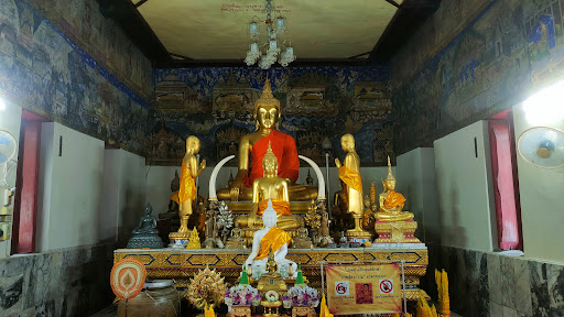 เป็นอีกวัดหนึ่งที่ตั้งอยู่ในอำเภอโพธาราม จังหวัดราชบุรี วัดแห่งนี้เป็นวัดที่ค่อนข้างสวยงามอีกวัดนึงเลยตั้งอยู่ริมแม่น้ำแม่กลอง ภายในพระอุโบสถมีจิตรกรรม อันสวยงาม จากที่ดูภาพจิตรกรรมภายใน เป็นภาพที่แสดงถึงการปรินิพพานของสมเด็จพระสัมมาสัมพุทธเจ้า ทั้ง 4 พระองค์ในอดีต ในภาพจะสื่อถึงวัฒนธรรมชาวมอญ ต่างๆ...
