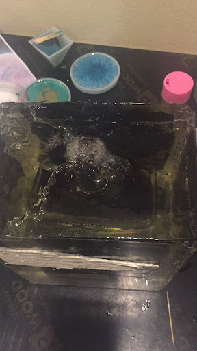 This review is only about the Trix epoxy resin maker. I requested to pour a bottle of whiskey into epoxy and make a cube with straight corners and sides. The problems began at the start. At first she wrote to me that her box collapsed and the resin leaked out. Then she asked me to pay more because she miscalculated the dimensions, I agreed because she said she would do everything perfectly. Although I do not understand how difficult it is to calculate the volume of a cube. Then she said that bubbles came out of the cork, this can be seen in the photo that I attached. She asked me to come to the workshop. When I arrived, a terrible surprise awaited me. The cube sides were uneven, the resin was a hazy yellow color, and there was debris inside the resin. She refused to discuss the debris inside the resin and only repeated endlessly that the bubbles were not her fault. It was terrible, she just ruined a bottle of whiskey for $70 and took another $30 in advance. In the end I donât have time to reorder this gift and $100 is just thrown into the trash.