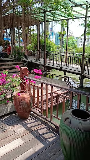 Read moreYou will get the feeling of an old style market similar to the floating market in Ayutthaya. Lots of people are visiting during the weekends where many food stalls of many varieties including street foods, fruits, whole meal and even mookata (eat all u can) for all ages.. It's easy to find parking space since it's located inside PTT Gas station with adjacent free space across right wing and the Central Mall across the left side. Fresh air along nearby wooden walkways built over a manmade lake with some pedal boats to rent for...
