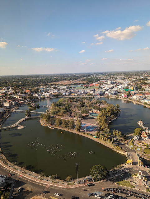 At first, I thought it’s just another tourist trap, but there’s quite a lot good information about how the tower reflects the local bamboo instrument called ‘WOT’ how the wot is made, used and what it means for local culture. There are several levels up on the tower with airconditioned viewing sections, open air sections, a sacred mini temple on the top, a café, a souvenir shop, etc. The views of Roi Et and surrounding areas are good, especially down to the park. Roi Et is in rural Isaan; hence you will be seeing mostly green fields, and on a clear day some hills in the background. Entrance is only 50B for Thai and foreigners (no obnoxious dual pricing). If you are 60 or older you will get a 10B discount and if you are above 70years the...