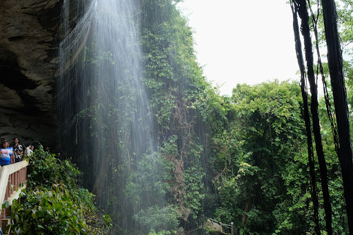 We came on a Sunday afternoon, and it was full of families and their kids. Most came here to use the natural pool below the waterfall as a swimming hole and with that there was also the usual squealing and screaming noises that kids make when water is near. The waterfall doesn’t carry a lot of water, it’s more of a rain shower over a cliff with a hollow walkway below it. Although there was a monk present and chanting to a few worshipers, we didn’t get a sense of this being a significant spiritual place (given the noise). Maybe it’s better on weekdays. I would not drive out of my way to...