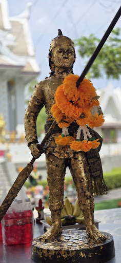 Read moreThe PhanthaiNorasing Shrine was constructed in memory of Phanthai Norasing, a legendary coxswain of the Ekkachai royal barge, noted for his and honesty. He took responsibility for damage to the sacred figurehead of a barge he was steering when the prow hit a large tree by a river canal. It is said that PhanthaiNorasing begged the king, Phrachao Suea, to execute him in accordance with royal law. Phrachao Suea complied against his own will, then ordered the construction of a temporary shrine. Phanthai’s head as well as the broken figurehead of the Ekkachai royal barge were placed in the shrine to symbolize his honesty and loyalty.