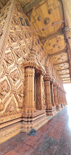 At present, the temple is constructing a new ordination hall made of beautifully carved wood. So beautiful. On the 2nd floor, there is shot skywalk...