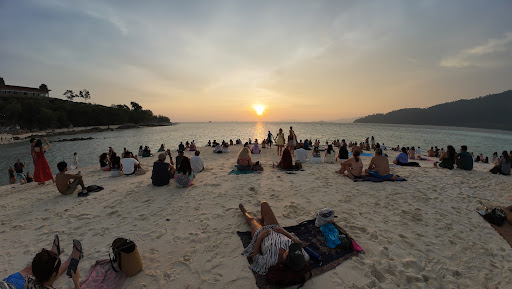 Picture this: a soft white sandbar surrounded by clear, calm water, and as the sun starts to dip, the sky lights up with the most unreal colors. It’s no surprise that by evening, half the island shows up here just to watch the magic happen. ✨