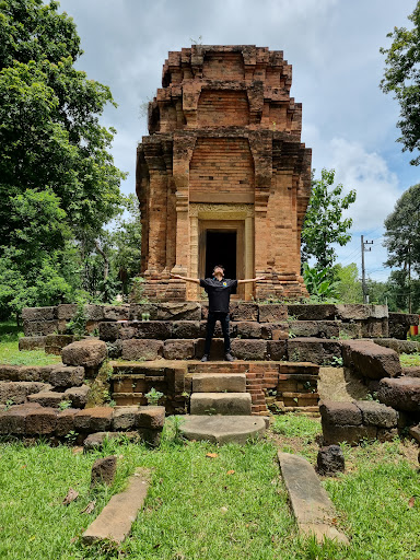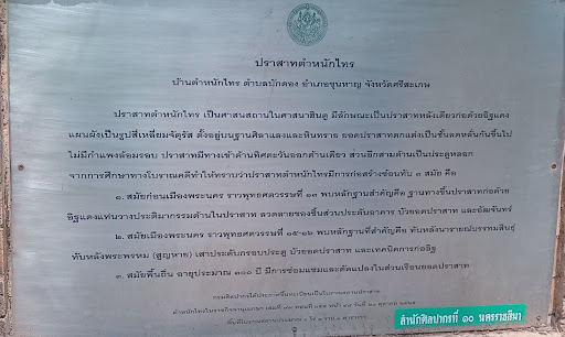 Prasat Tamnak Sai It is a place of worship in Hinduism. It looks like a single castle made of red bricks. The plan is square. Located on a laterite and sandstone base. The top of the castle is decorated in descending tiers. There are no walls around it. The castle has a single entrance on the east side. The other three sides are fake doors. From archaeological studies, it is known that Prasat Tamnak Sai was constructed in three overlapping periods:
