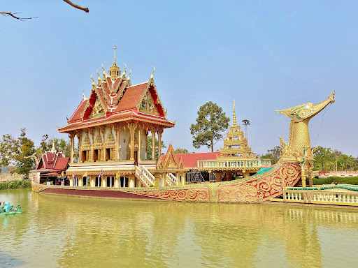 Read moreA beautiful temple with the main chapel is on the golden swan boat floating on a pond where there is Lord Buddha's relic inside. There is also a small local flea market beside a pond where you can buy local products from the nearby village. Walking through the rice field next from the temple, you can enjoy the green rice field view on the rainbow-colored bridge where you can take many good shots of photos.