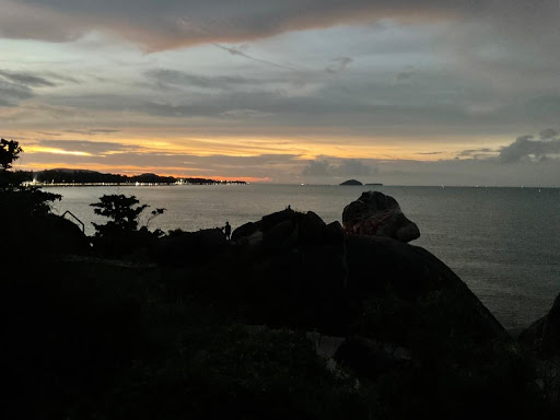 Early this month of July my group of friends n I went to Hatyai for a 4 day 3 night stay. The Thai local guide brought us to see the legendary golden mermaid n after that we visited Ko Yo island after crossing the famous Tinsulanonda Bridge which gave us a panaromic view of the SONGKHLA island n the SONGKHLA Lake, a naturally scenic n the largest lake in Thailand. Then we went shopping for some dried seafood such as dried shrimps, dried ikan bilis n dried cuttlefish which we found to be much cheaper here than in Malaysia.Then we returned to Kai Seng Beach for some photo taking sessions at this beautiful n sandy beach. Unfortunately we were caught in a traffic jam n when we reached the black sacred boulder at the beach , it was near sunset which was around 6.45pm. According to our local Thai guide this boulder is regarded as sacred by most Thais who usually perform certain prayers n religious rites round this boulder. Despite the darkness we could see that this sacred boulder is being wrapped neatly around with orange , red n yellow ribbons. Some tourists climbed up this boulder to take photos with it. I consider that a bit sacrilegious as it should be respected instead. This boulder is accessible by some steps leading down to the beach. It was too dark n dangerous for us to get near the boulder but we could enjoy the beautiful sunset . Part of the horizon was lit up with streaks of red n yellow hues from the setting sun. The sun looked like a golden salted egg yolk slowly sinking down the sea. It’s a mesmerizing sight not to be missed. I find this sunset is even more mystic than the sunset in Bali or even in the Gold Coast of Australia. Come n experience this wonder n marvel of God’s creation...