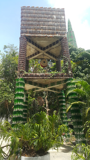 รวมถึงโบสถ์๒ชั้น ก็ประดับตกแต่งด้วยขวดชนิดต่างๆ ฝาเพดานประดับด้วยเปลือกหอยเชลแยก๒สีแบางพื้นที่เพดาน