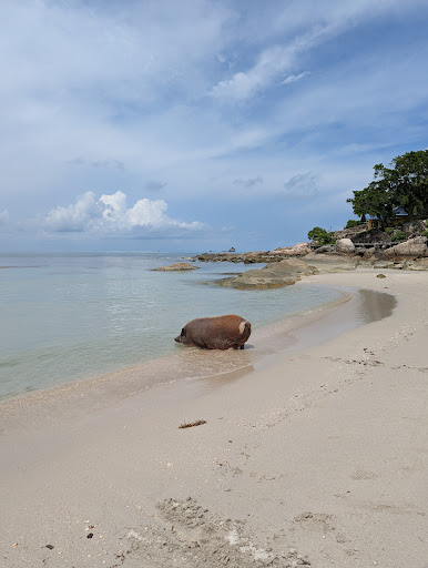 Read moreThe sea is beautiful, the food is very expensive, but the delicious drinks are very cheap. You don't need to go to Pig Island to see pigs. There are two very cute pigs here and squirrels on the beach. If you want a sun lounger, you have to pay 50 baht + 50 baht for an umbrella. you can rent a canoe and a jetski canoe is only 200 baht but jetski is...