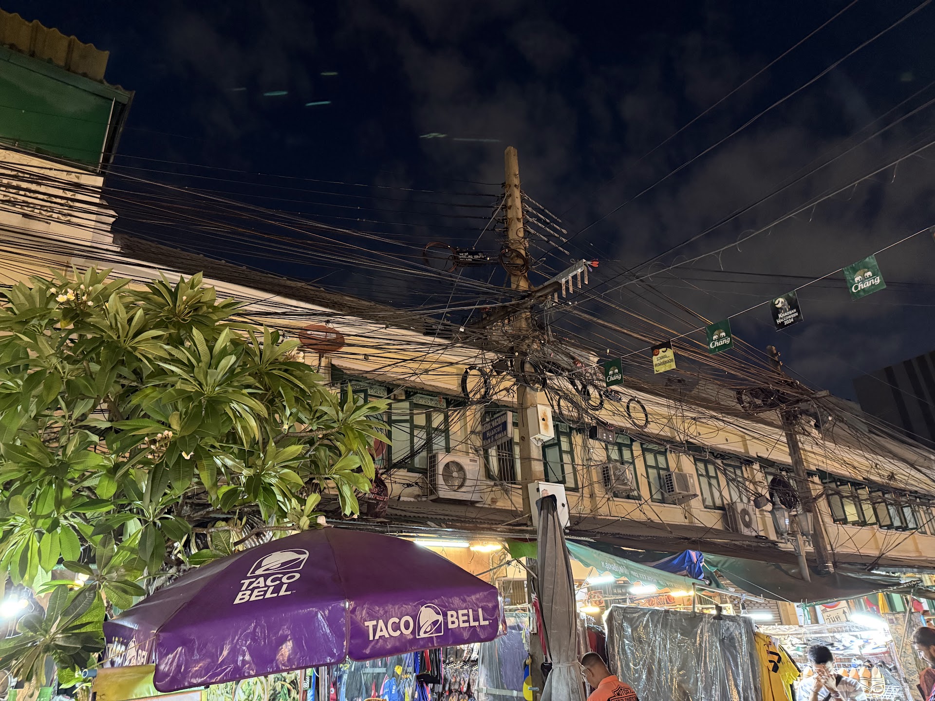 The smells were a mix of street food, marijuana, and unfortunately, sewage in some spots. Street food was everywhere, offering everything from pad Thai to fried insects. For those who enjoy street food, it’s probably an exciting scene, but for someone like me who sticks to familiar chains where I know exactly what I eat, it wasn’t appealing. I didn’t dare try anything, not because it might not be safe, but because unfamiliar food is simply not my thing. The exotic offerings, like fried insects, might appeal to the adventurous, but I didn’t have the courage to try them.