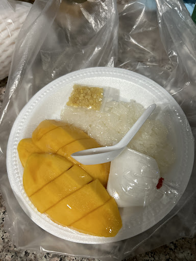 I bought mango sticky rice. They have local rice desserts here. I tried Pad Thai across the street, it was good.