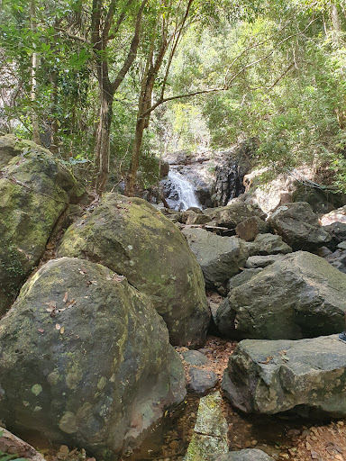 Just follow the obvious well worn path â which is used by local farmers too â to the river. On the way you will pass a couple of handpainted signed one of which is near a narrow concrete footbridge and says the waterfall is only 50 metres away. It isnât. Once you reach the river bank go down the moss covered steps and cross, you will get your feet wet, then make your way upstream a short distance. The first level is easily visible and a climb up another set of concrete steps by the first fall and this will bring you to the upper levels. Here there are a couple of small pools where you can swim.