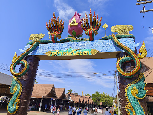 The mystical atmosphere: As you step onto the island, a sense of tranquility washes over you. Towering trees, vibrant flowers, and the gentle rustling of leaves create an ethereal ambiance. The sacred pond: The heart of Kham Chanot is the emerald green pond, believed to be a gateway to the underwater Naga kingdom. Locals and pilgrims come to pay their respects and seek blessings. The intricate temple: The temple itself is a masterpiece of traditional Thai architecture, adorned with vibrant colors, intricate carvings, and golden embellishments. The cultural richness: Kham Chanot is steeped in folklore and legend. Exploring the grounds, you'll encounter shrines, statues, and symbols that tell the story of the Naga and its connection to this sacred place. Tips for your visit: