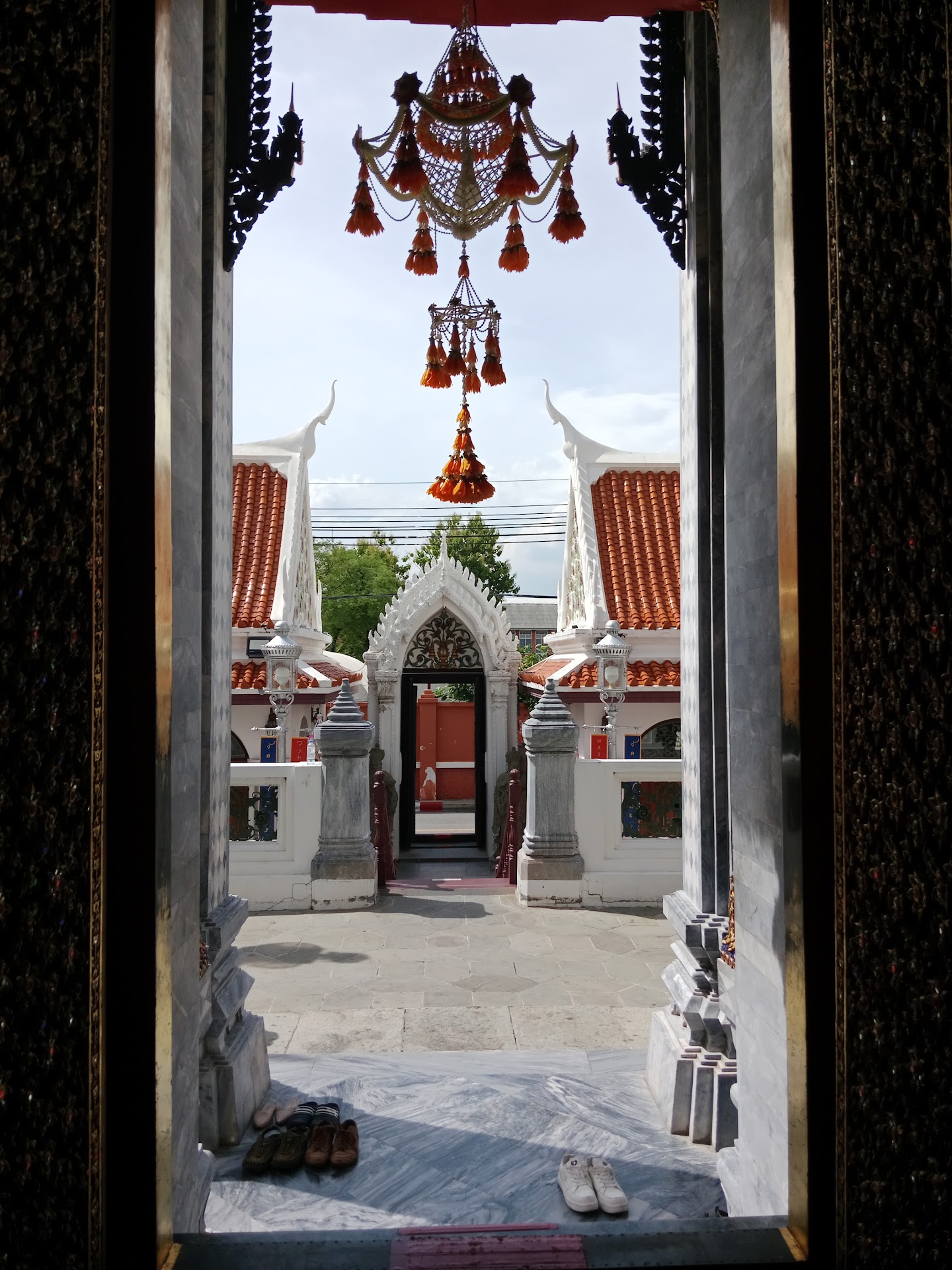 The temple, as historically important and beautiful as it is, still remains obscured by buildings, trees and guarded by some of the most vicious Wat dogs I've seen in Bangkok.
