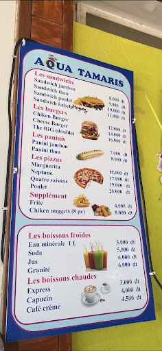 La nourriture est bonne et propre, avec des prix un peu élevés pour les familles. Sandwich et Burger entre 8 et 16dt Pizza entre 15 et 20dt Les boissons entre 3dt et 6dt Nuggets et frite 12dt (Sans tarifs d'entrée)