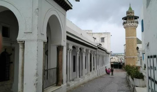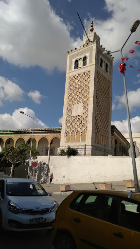 Read moreSalle de prière La salle de prière est encadrée de cours sur trois côtés à l'est, au nord et à l'ouest. Le long de la façade nord, un portique joue le rôle de galerie-narthex. De plan rectangulaire, la salle perpétue le plan classique de la salle hypostyle ; elle se compose de neuf nefs et sept travées. Les arcs reposent sur des colonnes, d'origines diverses, qui portent des chapiteaux de type hafside, hormis quelques exemplaires antiques. Le couvrement de la salle de prière est en voûtes d'arêtes ; une coupole sur base octogonale et trompes en coquille s'élève en avant du mihrab. Près de ce dernier se trouve le minbar en maçonnerie revêtu de panneaux de marbres polychromes ; ceci constitue une nouveauté par apport aux mosquées malékites dont le minbar est...