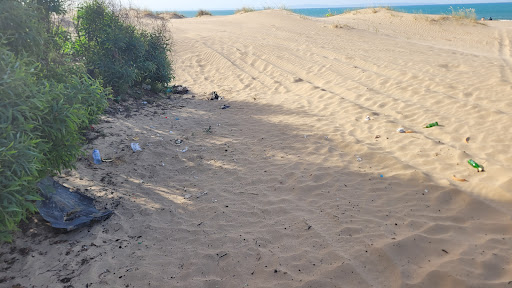 Dirty beach with Glas and plastic trash there… couldn’t walk...