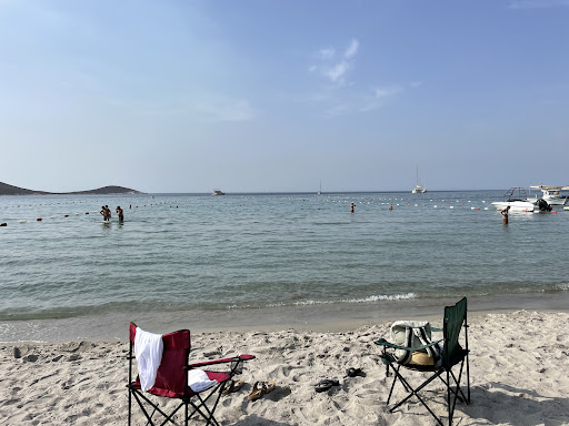 Ancak burada belediye şezlong/şemsiye hizmeti yok. Yani kendi şemsiyeniz ve sandalyenizle gelmeniz gerekiyor. İnsanların çoğu da bu şekilde gelmişti. Eğer yanınızda yoksa, deniz sporları (jet ski vs.) işleten bir firmanın şezlonglarını kullanabiliyorsunuz ama fiyatlar çok yüksek: şezlong başı 750 TL, iki şezlong 1500 TL. Konfor ve şemsiye kalitesi gayet iyi ama fiyat ciddi anlamda cep yakıyor.