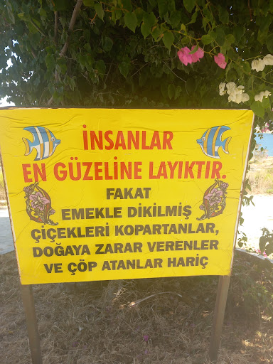 Bir de köşk yakinlarinda duran su tabelalar da dikkatimi cekti. Belediyenin koydugunu sanmiyorum cunku belediyenin kullandigi dil bu değil. Neymis begonvilleri insanlar araba ile gelip dalından kopariyorlarmis da cicekler dalinda guzelmis. Eee bu doğal ortamindan koparip daracik yerlerde dekor olarak kullananlara ne deni??? O cicekleri koparan kisiler bu zulümu yapanlardan daha vicdanlidir. Bir de tabelalardan birinde insan her seyin en guzeline sahiptir yaziyir. Çöp atmayan çevreyi koruyan. Insan en guzeline layiktir evet ama bir de Hayvanlari koruyan ve...