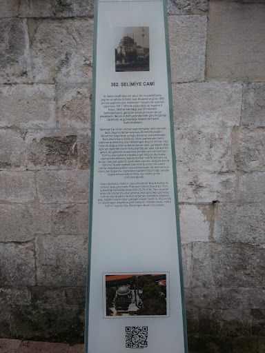 Read moreCami, Selimiye adıyla anılan meşhur semttedir. Selimiye Kışla Sokağı, Şerif Kuyusu Sokağı, Selimiye Camii Sokağı ve Çeşme-i Kebir Sokağı ile çevrili geniş alanı kaplar. Camiin bu sokaklara açılan avlu kapıları vardır. Tak halinde ve harpuştalı olan bu kapıların biri hariç diğer üçünün de, iç ve dış alınlarına âyet-i kerimeler yazılmıştır. Şerif Kuyusu Sokağı'na açılan avlu kapısının yalnız dış yüzünde âyet bulunmaktadır. Bu kapıdan avluya girildiğinde, sağ tarafında abdest muslukları olduğunu görürüz. Bunun ön kısmı muvakkithanedir. Muvakkithanenin sol tarafında ise Selimiye Camii şadırvanı vardır. Kapının sol tarafında da helâlar bulunmaktadır. Muvakkithanenin kitâbesi yoktur. Camiin cümle kapısı Selimiye Camii Sokağı'na açılmaktadır. Arazi meylinden dolayı iki taraşı, zemini ve korkulukları kesme taş olan bir rampanın yardımı ile avlu kapısına çıkılmaktadır. Kapının iki yüzüne gayet güzel celî bir hat ile ayetler yazılmıştır. Tak halindeki bu büyük ve yüksek kapının üzeri kurşun kaplı olup tepesine küçük bir alem yerleştirilmiştir. Selimiye Kışlası Sokağı'na açılan avlu kapısının iki tarafında camiin hazîresi bulunmaktadır. Bu sokağa bakan avlu duvarına hâcet pencereleri açılmıştır. Selimiye Kışlası Sokağı ile Şerif Kuyusu sokaklarının birleştiği yerde, bugün meşruta ve çocuk kütüphanesi olarak kullanılan sıbyan mektebi vardır. Fevkânî olan bu yapının üst kısmı ahşaptır. Avluda bugün kullanılmayan çok büyük bir şadırvan bulunmaktadır. 4 x 2 adım boyutlarındaki bu şadırvan dikdörtgen tekne biçimindedir. Üzerini kalın bir kapağın örttüğü bu teknenin dört yüzünde toplam 12 musluk yeri vardır. Kitâbesi yoktur. Mabet hakkında Hadîka yazarı Hafız Hüseyin Efendi şu bilgiyi vermektedir: "Bânisi, Sultan Selim Han-ı Salis'tir. Eyüp camiini tecdid ve ihya buyurduktan sonra Bina Emini olan rical-i Devlet-i Aliyye'den Uzun Hüseyin Efendi bu camiye dahi Bina Emini tayin olunup 1216 (1801) senesi yapımına başlanıp, 1220 Muharreminin 5. günü (5 Nisan 1805) tamamen bitmiş olup ibadete açılmıştır. Sultan III. Selim'in sırkâtibi Ahmet Efendi Ruznamesi'ne göre, 23 Zilhicce 1216 (26 Nisan 1802) pazartesi günü, yapılan bir merasimle "Kavak Sarayı mahallinde ihya gerde-i şahane olan ta'limli asker kışlağı kurbınde bir camii şerif bina ve ihyası için" temel atılarak inşasına...