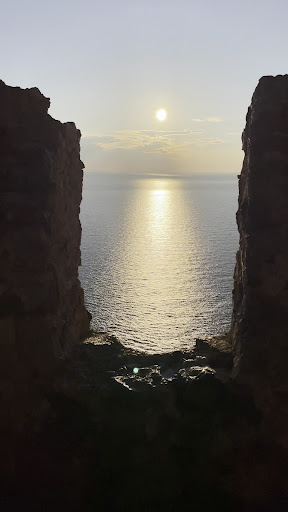 When we finally reached our destination, it felt too soon to leave. So, we waited for the sunset. The slow descent of the crimson sun painted the world in warm hues, as if a master artist was brushing the sky with shades of amber and gold. The brilliant harmony between the red sky and the deep blue Mediterranean was mesmerizing. The coldness of the winter evening melted away in the glow of the setting sun, making us forget the chill that had nipped at our skin.