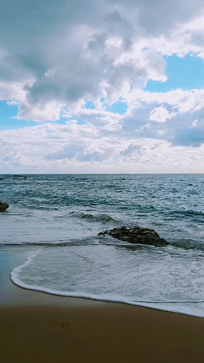 Sandy beach with a warm water no medusas no dirt it is clean some bigger rocks in sea but the water is clean so they are visible...