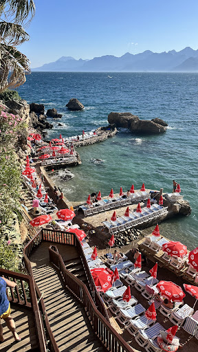 Mermerli Plaji Beach Club is a hidden gem tucked away within the Antalya Old Town (Kaleici). While Antalya boasts many beautiful beaches, Mermerli Plaji offers a unique experience that combines stunning scenery, crystal-clear waters, and a charming atmosphere.