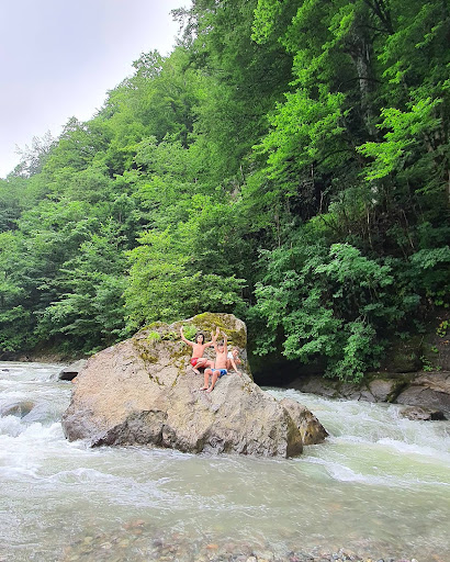 Read moreYemyeşil doğa içnde kıvrımlı bir yol ile ulaşıyorsunuz. Yol boyunca solunuzdan Orçi çayının eşliğinde çayın uğultusu kulaklarınızda mütevazi bir cafeye geliyorsunuz. Orada kısa bir mola verip taze demlenmiş çayınızı yanıbaşınızda bembeyaz köpük köpük akan çayın nağmesini dinleyerek yudumladıkran sonra asma tahta köprüden geçerken merdivenleri çıkmaya başlıyorsunuz. Yaklaşık onbeş dakikalık tırmanıştan sonra suyun sesini duyamaz oluyorsunuz. Tamamen ağaçlarla çevrili bir ormandasınız. Zaman zaman şırıldayarak akan çeşmeler ve kuş cıvıltıları arasında bir iki yudum su içip tekrar zorlu tırmanışa geçiyor onbeş dakika sonra suyun sesi artık yukarılardan, yakından gelmeye başlıyor. Biliniz ki artık finale ulaştınız. Ve birden sol yanınızdan suların yükseklerden kayalara çarpa çarpa alttaki büvete döküldüğünü görüp hemen fotoğraf çekmeye durursunuz. Bir köprü daha geçtikten sonra artık şelalenin suyunda serinleyebilir hatta...