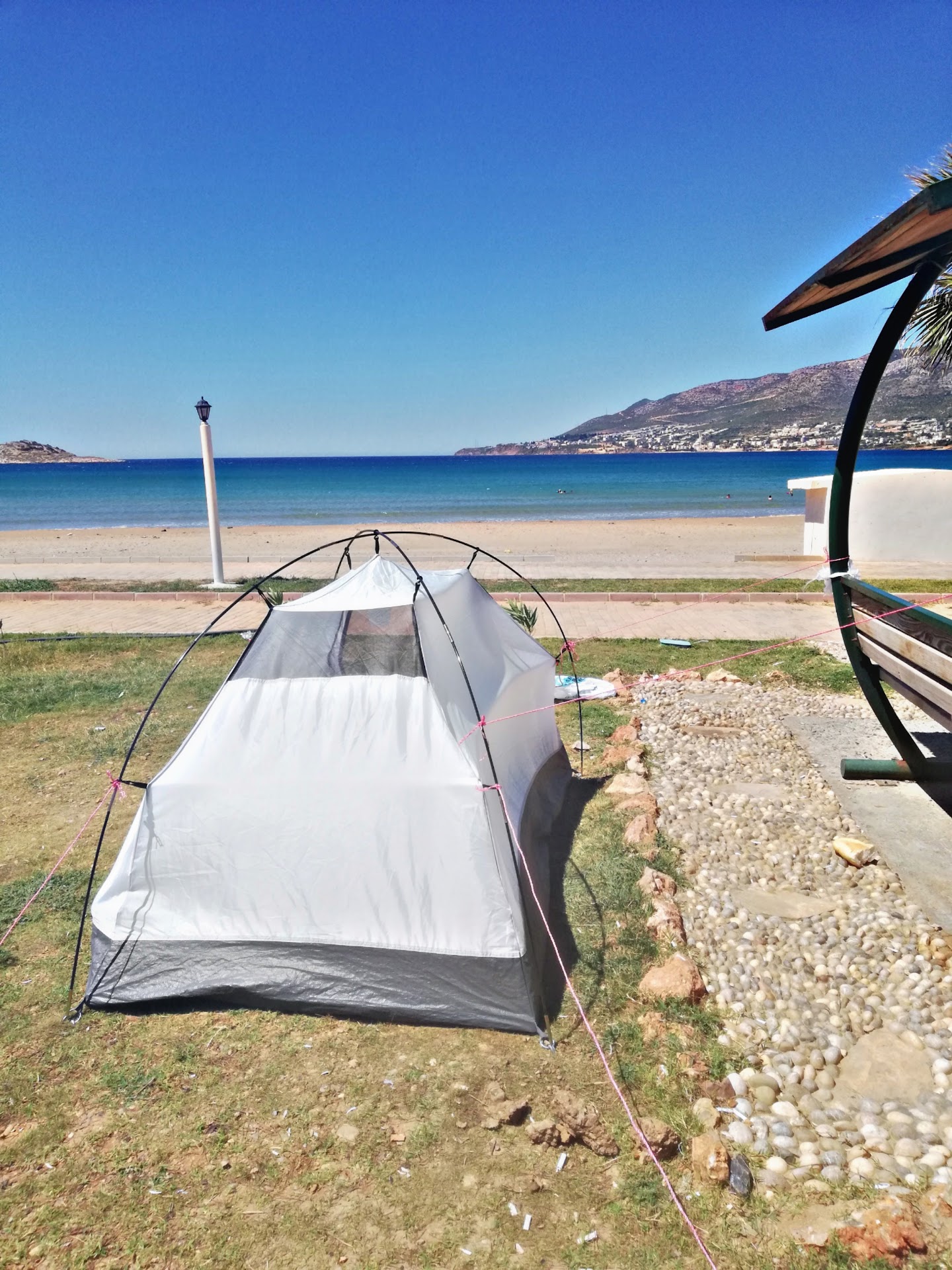 Taşucu incekumda kamp yasağı olduğunu öğrendikten sonra kamp alanı ararken burayı bulduk iyiki bulmuşuz farklı farklı plajlara gittim hiç bu kadar temiz denizi olan bir plaj görmedim dalış gözlüğüyle daldığınızda tabanını çevresini en ince ayrıntısına kadar izleyebiliyorsunuz denizde yavru olsun el kadar büyük olsun balıklar var zararsızlar onlarla denizin altı daha da bi güzelleşiyor denize girerken ilk 30 40 metre dizlerinize geliyor o mesafe sonrası hafiften derinleşiyor biz kamelyaların orda çadır attık akşama doğru yetkili geldi çimlerin üstünde çadır yasak dedi arka tarafa doğru yönlendirdi özel çadırlar için alan ayırmışlar zeminide matınız varsa rahatsız etmeyecek kadar iyi tuvalet çeşme duş soyunma kabini çöp tenekeleri mevcut ve ücretsiz ama kamp alanında çöp tenekesi yok malesef kamelyaların oradaki çöp tenekesine kadar yürümemiz gerekiyor araç 30 tl çadır 10 tl gibi bi fiyat vardı biz aracımızla geldik bizden 30 tl aldı gece vakti yetkili olmuyor eğer gece girdiyseniz plaja diğer gün akşama doğru yanınıza gelip ücreti topluyor gündüz girişte alıyor gece vakti ne kadar sessiz olsada içenler çok fazla oluyor rahatsız etmiyorlar ama çok ses yapıyorlar park biraz kirli yetkili kişi çöp tenekelerini boşaltıyor gün içinde tuvaleti çok pis en önemlisi ise ağaçlık yok bir kaç yer haricinde kapabilirseniz rahat olursunuz ama kesinlikşe şemsiye getirmek şart yoksa sıcaktan çadırda yatılmıyor. Buraya gelecekseniz lütfen çöplerinizi oraya buraya atmayın nasıl olsa toplarlar düşüncesinde olmayın temiz bırakın...