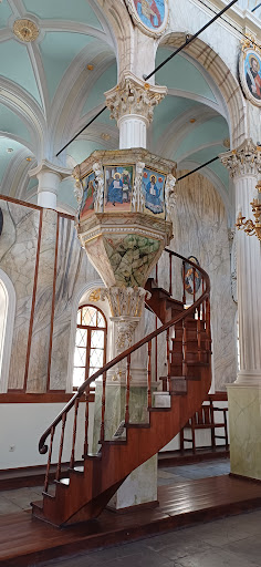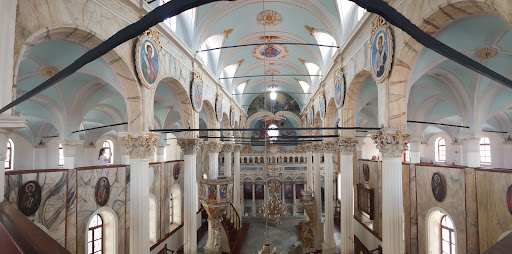 The inscription dated to 1844 occurs on the entrance and it reveals that the third period structure was borrel vaulted and its upper bearings were completely made of wood. The church has three naves and the narthex located on its west façade provides access via three doorways. An ambon with. lion depiction and adorned with stucco reliefs stands in the centre of the nave and you can go up on to the ambon, where there are icons of saints, through a spiral stairs. A raised platform, placed across the ambon, is adorned with floral marble reliefs and gold foils. You can reach the apse at the back after you pass the iconostasis which was adorned with marble icons telling the life of Jesus Christ and also embossed with marble reliefs and gold omaments. On the second floor of the structure occurs a wooden gynaikeion with 16 windows, a round arch, and the U-shaped upper gallery which was reserved for the women. You can reach this section via stone stairs with bell tower on the north and wooden stairs on the south. The imitation marble wall decorations in the structure are done with secco painting (painting on dry plaster) on plasterboard. It was understood from the signature dated to 07.12.93 on the south corner of the structure that these eclectic style imitation marbles were made by an artist called M.Pizdem. Since Ayvalık is on earthquake zone, the structure has been damaged in the course of time during different periods and it was discovered from the wall decorations and paintings that restoration works were carried out in the structure and changes were made in the decoration plan.