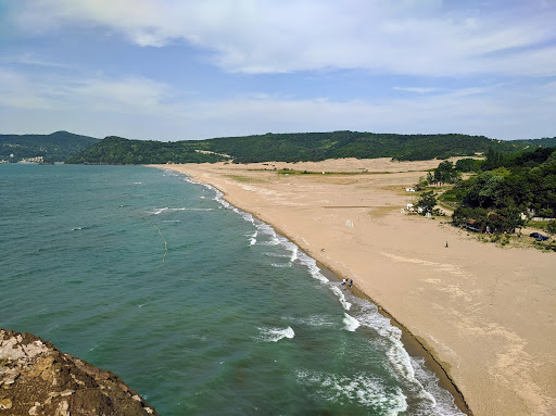 Read moreThis is a georgeous bay at the blacksea. The beach is huge and there are is nothing around, a very virgin beach, but a must see in this region. The sand is soft and red colored. The sea was wavy but the place is amazing amd must be a great experience to swim there. We went in september and it was just after rain, when we catched some sunlight for pictures, so we couldnt swim. But we really want to come back in summer to taste...